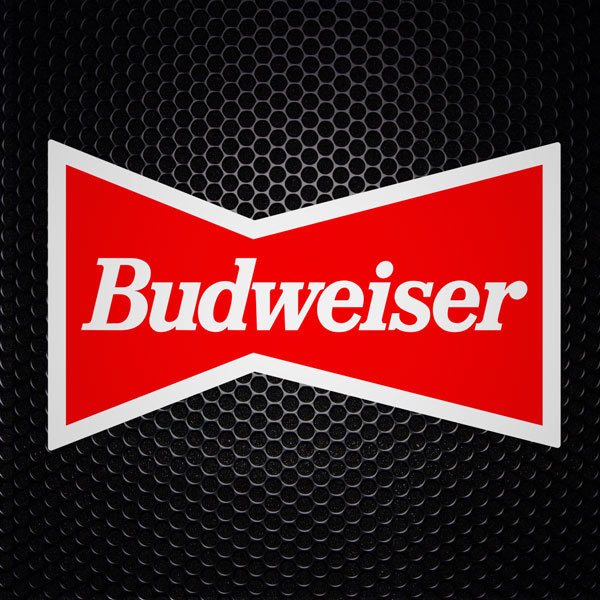 Autocollant Budweiser Rouge. Autocollant décoratif spécial de la célèbre bière américaine d'origine tchèque Budweiser. Réalisé avec la forme emblématique du nœud papillon sur un fond rouge, cet autocollant est idéal pour décorer les voitures, les motos, les meubles et autres objets où vous souhaitez avoir une décoration originale et marquante.