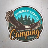 Autocollant Camping Season. Wild Outdoor, design circulaire pour les amateurs de camping d'un autocollant avec du texte en anglais dans des tons de vert et de bleu avec un grand aigle. Le camping vous permet un contact direct avec la nature. Décorez votre voiture ou votre caravane avec ce motif.