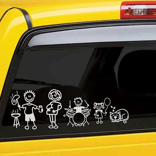 Autocollant famille pour voiture Garçon jouant au football. Petit garçon habillé et descendu comme un footballeur professionnel tout en marchant sur le ballon. Aime jouer au football et rêve d'être comme Pogba, Neymar ou Griezzman. Combinez-le avec d'autres autocollants familiaux et représentez votre famille avec ces dessins dans votre voiture