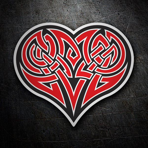 Autocollant Coeur tribal. Design moderne dans lequel on voit un cœur avec un tribal adapté à l'ensemble de son intérieur. Adhésif pour décorer les planches de surf, skateboards ou snowboards, résistant à l'humidité et valable pour la voiture, la moto et le vélo. Aussi en grand format pour décorer les murs de votre chambre.