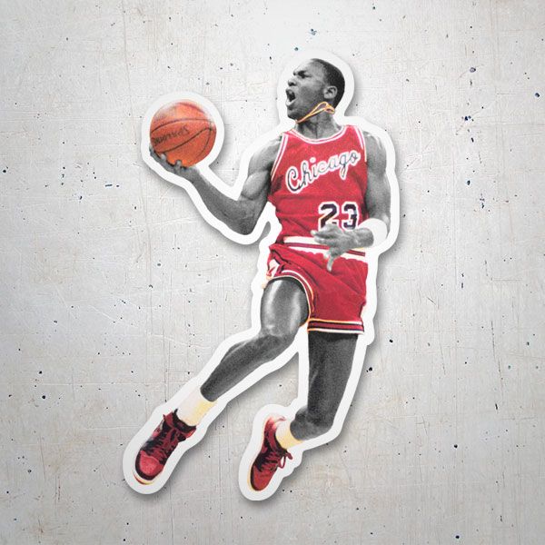 Autocollant Michael Jordan (Chicago Bulls). Né à New York le 17 février 1963, il est considéré comme le meilleur joueur de basket-ball de l'histoire. Il a remporté six anneaux avec les Chicago Bulls, avec une moyenne de 30,1 points par match au cours de sa carrière, la moyenne la plus élevée de l'histoire de la ligue.