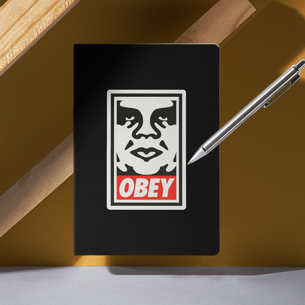 Autocollant Obey. Frank Shepard Fairey, OBEY, (né le 15 février 1970 à Charleston, États-Unis) est un artiste urbain et designer graphique. Célèbre pour ses autocollants à l'image du lutteur de la télévision André le Géant. En plus de ses affiches aux slogans subversifs : Penser et créer, imprimer et détruire.