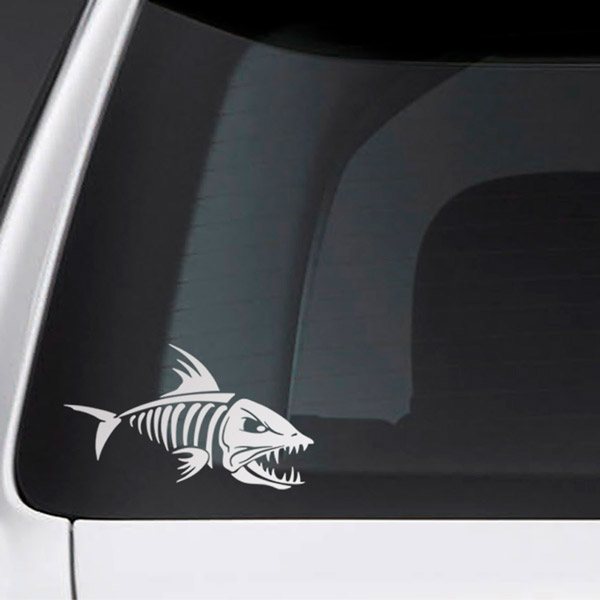 Autocollant Squelette de Poisson. Avec son design saisissant, ce grattoir à poisson semble appartenir à un piranha ou à un poisson vampire avec ses dents acérées. Rêver d'arêtes de poisson symbolise la recherche de quelque chose mais avec des difficultés. Mettez cet autocollant sur votre voiture ou même dans votre chambre à coucher.