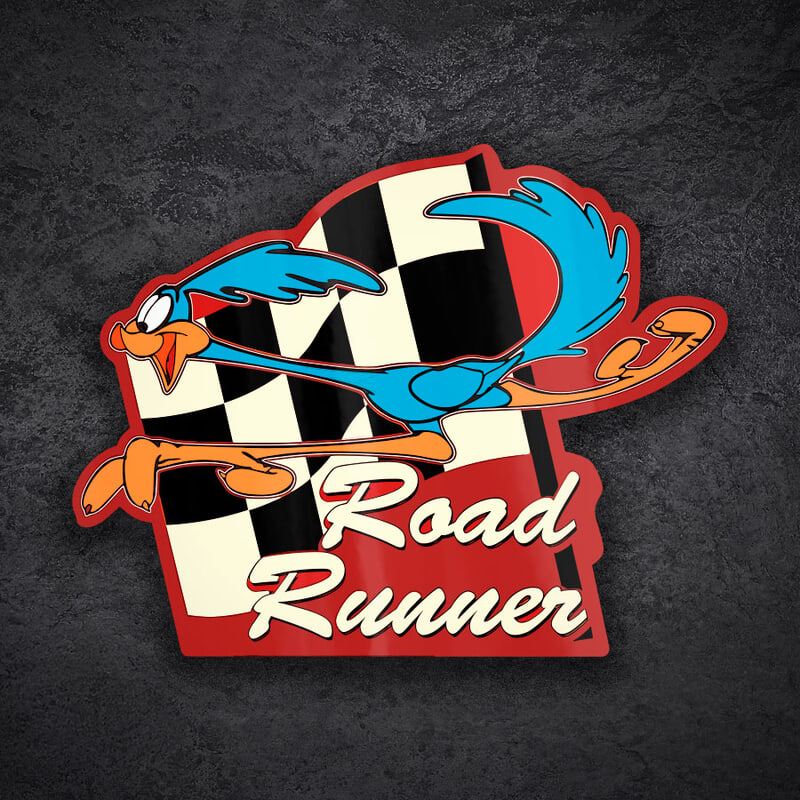 Avec le texte "Road Runner" sur fond rouge et le drapeau à damier, ce vinyle est idéal pour les fans des Looney Tunes. Un adhésif de haute qualité, plein de dynamisme et de nostalgie, qui évoque le frisson de la course. Ne manquez pas votre Bip Bip gauche !