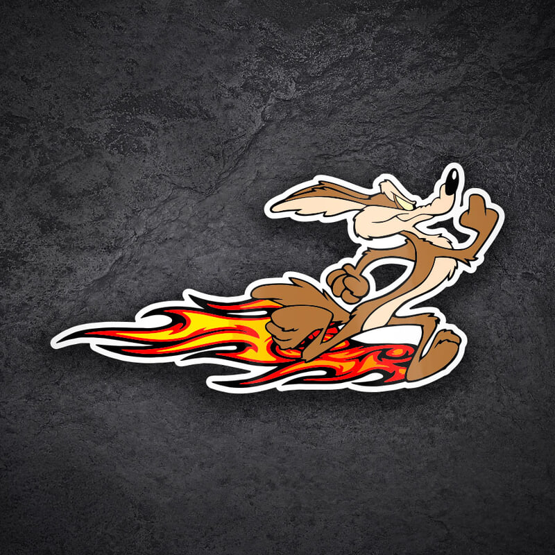 L'ingénieux Vil Coyote à plein régime ! Cet autocollant de Vil Coyote avec des flammes capture parfaitement ses tentatives explosives et pleines d'humour pour attraper Bip Bip. Un design vibrant pour les fans des Looney Tunes classiques.