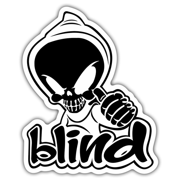 Autocollant Blind Skateboards. C'est une société de skateboard fondée par Mark Gonzales en 1989. L'entreprise fabrique des housses, des roues, des produits mous et des accessoires pour skateboards. Le logo de l'entreprise depuis de nombreuses années était un crâne similaire à la représentation de la "mort".