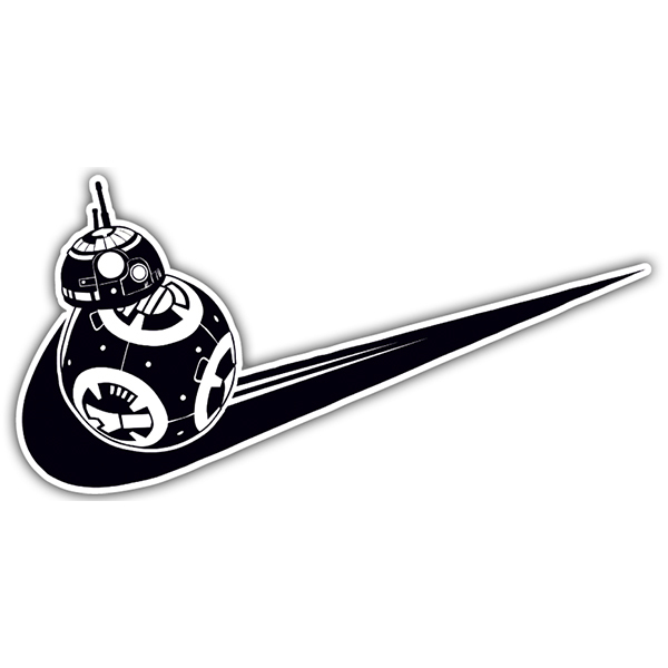 Autocollant BB8 Nike. Sticker du personnage BB 8 de Star Wars supporté sur le logo de Nike. Star Wars est certainement la meilleure saga de tous les temps de la science-fiction unie à Nike, l'une des plus grandes multinationales de vêtements de sport.
