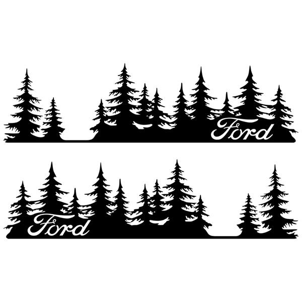 Autocollant pour fourgonnette arbres Ford. Ce kit comprend deux autocollants de marque Ford, un pour chaque côté de la camionnette. Le design est une forêt de pins luxuriante dans laquelle vous pouvez lire Ford, qui représente le voyage à travers le monde. Choisissez la couleur et les mesures les plus appropriées pour décorer votre van.