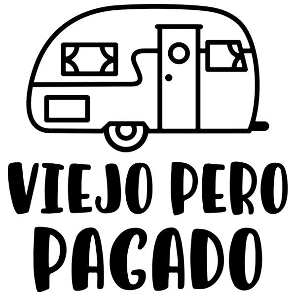 Sticker autocollants caravane Viejo pero pagado. Une silhouette amusante d'une vieille caravane avec le texte en espagnol ancien mais payant. La première caravane a été inventée par une compagnie allemande en 1931 et les surfeurs des Etats-Unis pour se déplacer confortablement ont fini de les rendre à la mode vers 1940.