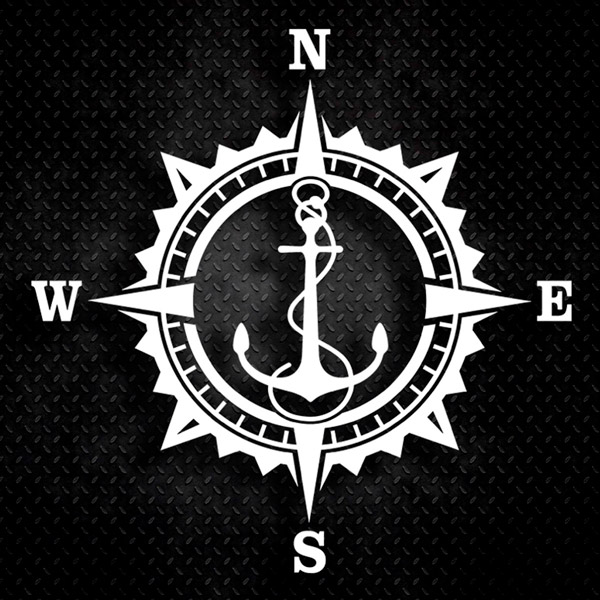 Autocollant Boussole Ancre de Marine. Autocollant décoratif original de l'insigne emblématique de l'exploration, la rose des vents, montrant ce symbole frappant avec un intérieur reflétant une grande ancre de navire. Fabriqué à partir de matériaux de haute qualité, cet autocollant original est disponible en plusieurs couleurs et finitions.