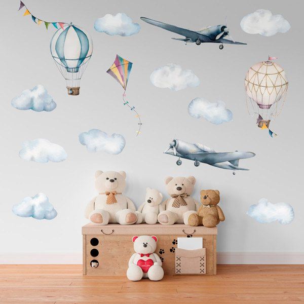 Explorez les merveilles du firmament avec des stickers muraux enfants avion, ils transporteront votre enfant au bout du monde à travers les nuages du ciel. Il sera très facile de les voir sur les murs de la salle imaginer piloter une fusée spatiale, un ballon ou un avion léger du film Disney Planes. Des avions de transport, commerciaux ou ultralégers, en passant par les avions de combat et les jets de l'armée, les hydravions des pompiers ou une grande collection d'avions pour enfants. Combinez-le avec un kit de nuages et ça aura été un succès.