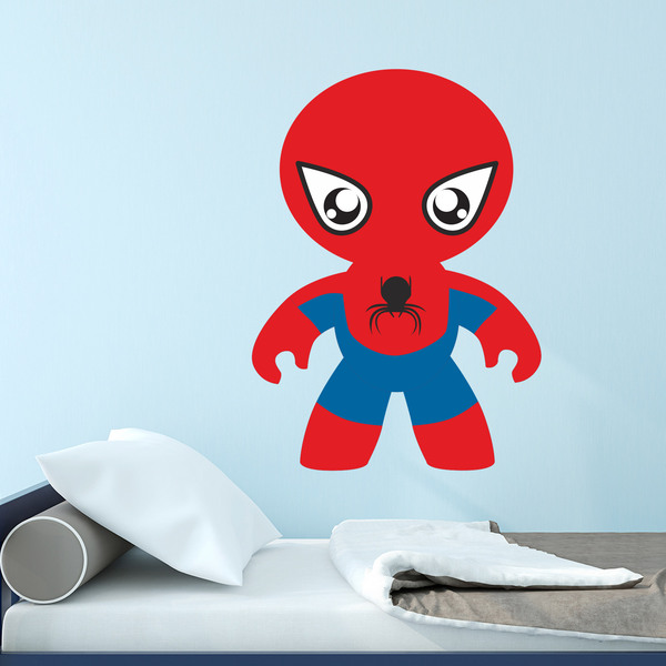 Sticker mural enfant Spiderman. Dessin amusant du super-héros des bandes dessinées et des films de Marvel Comics. Il a été créé par Stan Lee en 1962. Parmi ses pouvoirs, il y a une grande agilité et flexibilité, ainsi que la capacité de s'accrocher à toutes les surfaces pour combattre le mal.