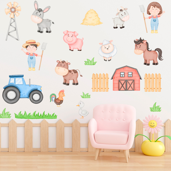 Kit animaux de la ferme. À la ferme, il se passe toujours quelque chose, tous les animaux jouent ensemble, un kit amusant avec lequel les petits de la maison apprendront en jouant tout en développant leur imagination. Des fermiers, une chèvre, un cochon, une vache, une étable se distinguent dans ce dessin pour enfants.