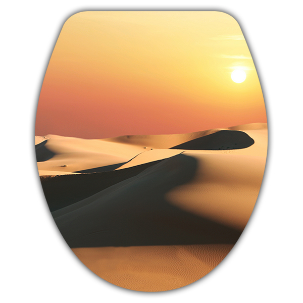 Voyagez vers un paysage exotique sans quitter la maison avec ce sticker pour abattant WC. Le design capture la lumière magique d'un coucher de soleil dans le désert, avec le soleil se cachant derrière les dunes de sable chaud. Cet autocollant crée une atmosphère sereine et évocatrice, parfaite pour ajouter une touche de chaleur et d'originalité à vos toilettes. Décorez votre salle de bain avec ce paysage unique et transformez un objet quotidien en une fenêtre sur un monde lointain.
