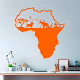Toute l'essence du continent africain sur ce sticker mural. Une silhouette de l'Afrique comme un cadre d'un beau paysage de la savane africaine. Les animaux les plus représentatifs, le lion, l'éléphant, la girafe, les guépards, les oiseaux et un arbre typique (acacia) et en arrière-plan un coucher de soleil extraordinaire. Un design exclusif.