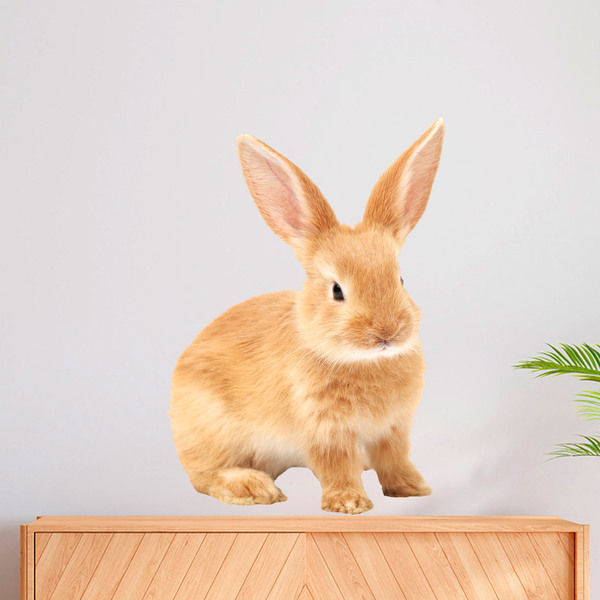 Autocollant Lapin Thrianta. Cette race de lapin a été créée en Hollande en l'honneur de la famille royale néerlandaise, en raison de sa couleur orange caractéristique. C'est un lapin avec un corps rond et compact avec un pelage doux. Les Thrianta sont des lapins doux et curieux.