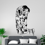 Sticker mural Le baiser (Gustav Klimt). Il utilise le style de l'Art Nouveau et les formes organiques du mouvement de l'art et de l'artisanat contemporain. Gustav Klimt représente le couple enfermé dans l'intimité, tandis que le reste du tableau est dissous dans un fond brillant avec un motif extravagant.