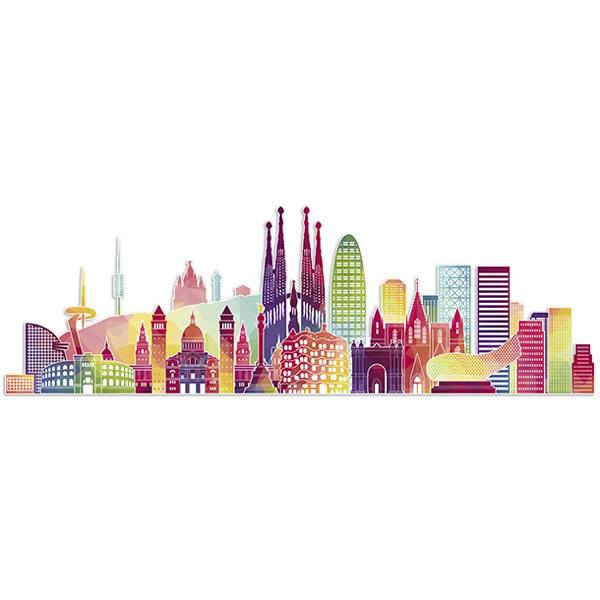 Sticker mural Barcelone skyline couleur. Conception colorée des bâtiments les plus emblématiques de Barcelone décorés avec un style moderne de mélange de couleurs vives. Image fantastique pour décorer n'importe quelle pièce de la maison ou n'importe quelle affaire.