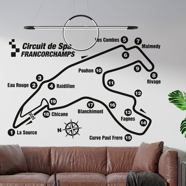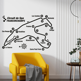 Sticker mural Circuit de Spa-Francorchamps. L'un des circuits vedettes et favoris de nombreux fans et pilotes. En Belgique, elle est longue de 7 kilomètres et sa combinaison de longues lignes droites avec des courbes difficiles la rend unique, en plus de la beauté de l'environnement forestier qui l'entoure.
