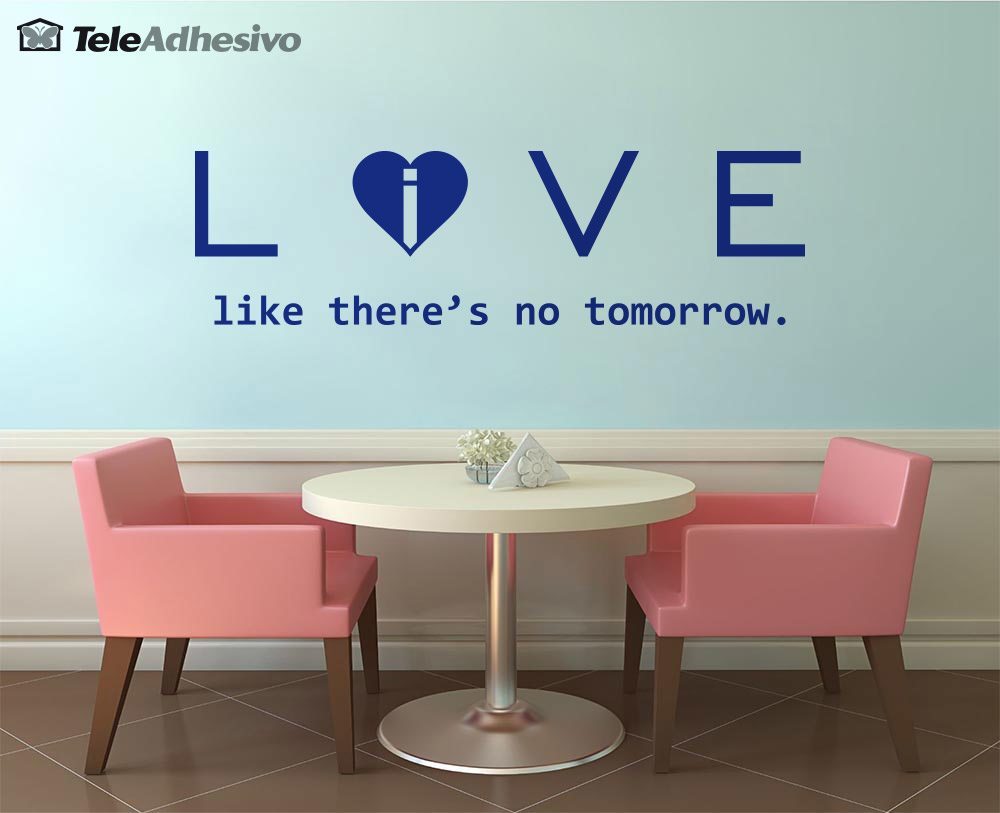 Sticker mural Love - live like there´s no tomorrow. Un vinyle décoratif avec des citations célèbres en anglais est le meilleur moyen de personnaliser différents espaces avec une touche cool. Des phrases inspirantes, motivantes, romantiques qui s'intégreront parfaitement à votre espace et lui donneront une touche originale.