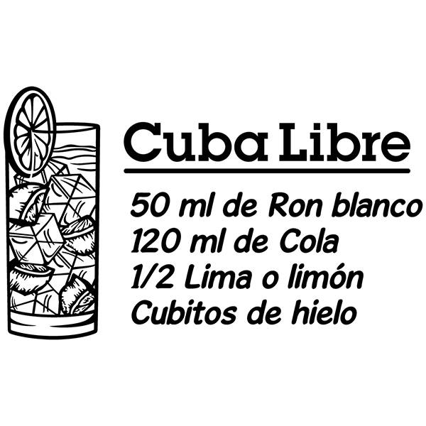 Sticker mural Cocktail Cuba Libre - spagnol. C'est un cocktail cubain issu du mélange de cola et de rhum. Les ingrédients pour sa fabrication en espagnol apparaissent. C'est un classique dans le monde des cocktails et est maintenant populairement connu sous le nom de cubata. Au Chili, il s'appelle Roncola et au Mexique, c'est seulement Cuba.
