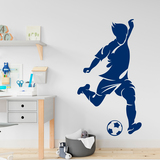 Sticker mural Joueur de foot. La position indique que le joueur est prêt à frapper le ballon avec force soit pour une passe soit pour un tir au but. Le football est l’un des sports qui compte le plus grand nombre d’adeptes et de fans dans le monde. Idéal pour décorer la salle du fan de football.