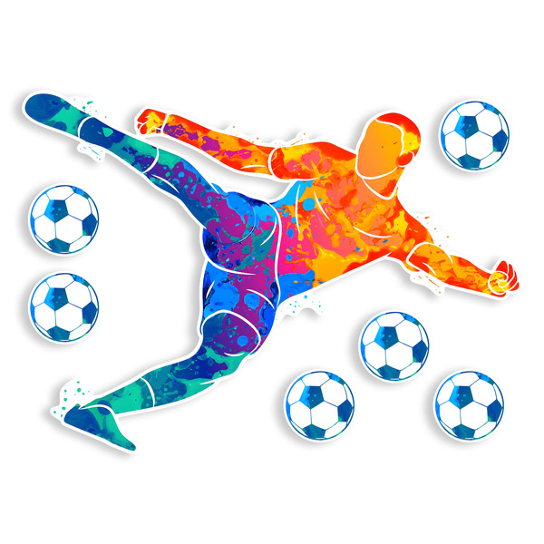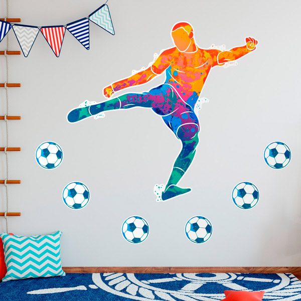 Sticker mural plaquage arrière et ballons. Le design de ce sticker mural présente une silhouette en pleine volée, capturant l'excitation du moment où un joueur tire au but pour marquer. De plus, il est livré avec six ballons de football qui peuvent être placés comme vous le souhaitez. Si vous êtes un amateur de football, c'est peut-être le design que vous recherchez pour décorer votre chambre.