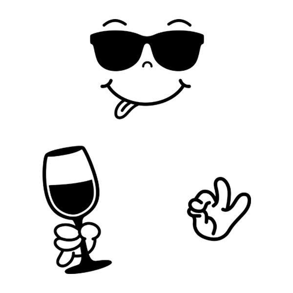 Stickers Réfrigérateur un Vin Parfait. Des dessins amusants pour décorer votre cuisine avec ces vinyles pour le réfrigérateur ou tout autre endroit. Un simple personnage avec des lunettes vous regarde en souriant tandis qu'il tire la langue, une main tient un verre de vin et l'autre fait un geste indiquant qu'il est parfait.