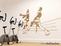 Sticker mural Muhammad Ali esquivant. Dessin du moment mythique où Muhammad Ali évite un coup de Joe Frazier en 1971 grâce à ses pieds. Il est considéré comme le plus grand boxeur de tous les temps et un personnage d'une influence énorme dans sa génération, en politique et dans les luttes sociales.