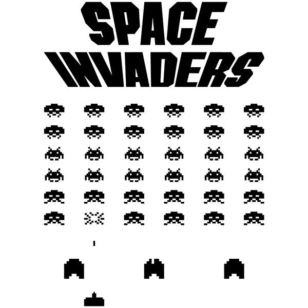 Sticker mural Space Invaders Game. C'est un jeu vidéo d'arcade conçu par Toshihiro Nishikado en 1978. C'est l'un des premiers jeux de mise à mort martiens et l'un des jeux vidéo les plus importants de l'histoire. Votre but est d'éliminer les aliens avec un canon laser et d'obtenir autant de points.