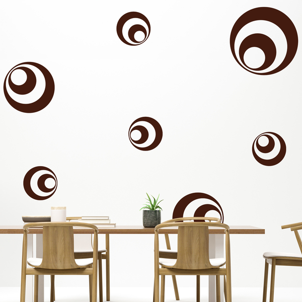 Le kit se compose de sept cercles de différentes tailles. Dans celle-ci, vous trouverez quatre petits cercles, deux moyennes des cercles et un grand cercle. Ceux-ci peuvent être placés vinyle circulaire pour décorer des meubles, armoires de cuisine, murs, etc ... Donner aux murs de votre maison une touche personnelle différente et psychédélique avec ce vinyle décoratif.