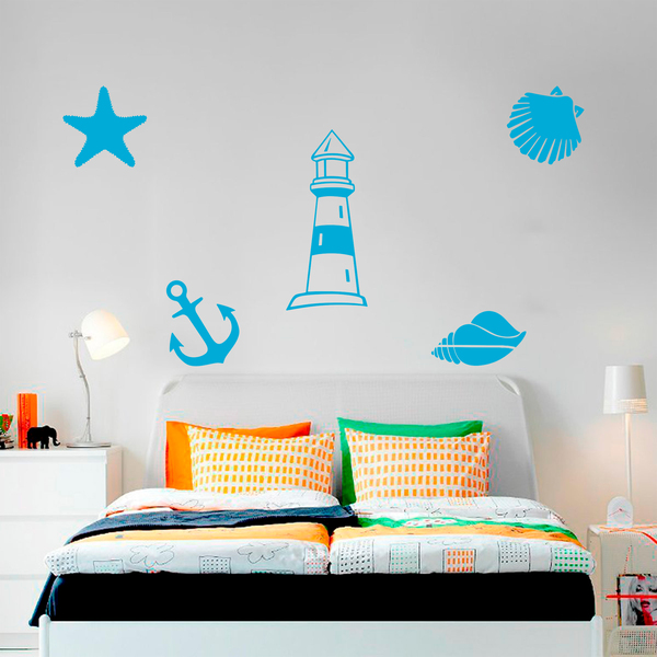 Créez votre propre composition côtière avec ce set de stickers marins. Le kit comprend cinq éléments emblématiques : un phare, un conque, un coquillage, une étoile de mer et une ancre. Étant des autocollants individuels, ils vous offrent une liberté totale pour décorer un mur, le carrelage de la salle de bain ou un meuble à votre goût. Ils sont parfaits pour ajouter une touche nautique cohérente à n'importe quel espace, évoquant la brise marine et ses trésors cachés.