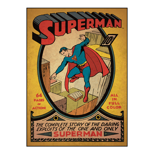 Poster Adhésif Bande Dessinée Classique sur Superman. Fantastique poster adhésif avec une couverture de bande dessinée avec Superman comme personnage principal. Procurez-vous l'une de nos fantastiques images de vieux comics et décorez votre espace avec les super-héros les plus légendaires du vingtième siècle.