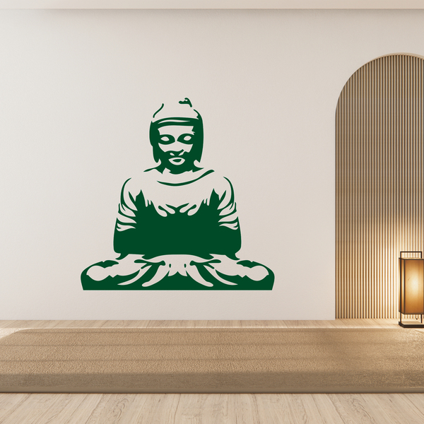 Sticker mural Bouddha méditant. Conception d'une statue de Bouddha priant dans sa tenue typique. Siddhartha Gautama, mieux connu sous le nom de Gautama Bouddha, Sakiamuni, ou simplement Bouddha, était un ascète (sanniasin) et un sage sur les enseignements duquel le bouddhisme était fondé. Idéal pour décorer la salle à manger ou le salon.