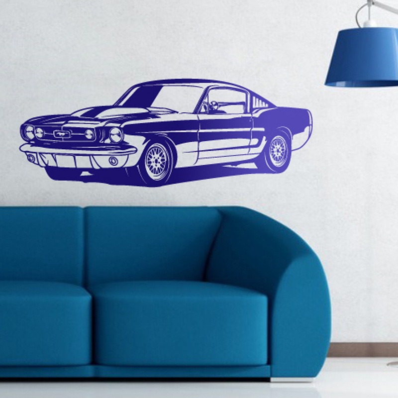 Sticker mural Ford Mustang Shelby GT350. Voiture mythique construite par Shelby American de 1965 à 1968 et de 1969 à 1970 par Ford. Après l’introduction de la cinquième génération de la Ford Mustang en 2005, la plaque Shelby a été relancée en tant que nouveau modèle haute performance.