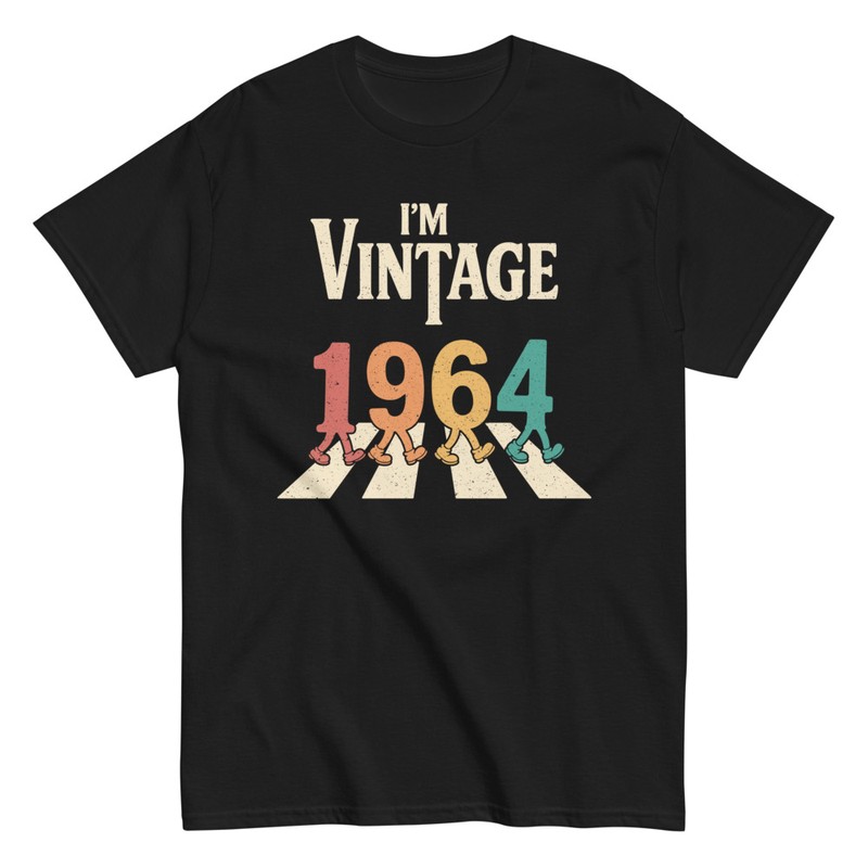 Célébrez une étape spéciale avec ce t-shirt vintage original. Si vous êtes né en 1964, c'est la façon parfaite de montrer votre fierté et votre sens de l'humour. Le design amusant, inspiré de la couverture mythique d'Abbey Road, combine le texte "I'm Vintage" avec l'année 1964. C'est le cadeau parfait 61 ans pour hommes et femmes, ideal pour ajouter une touche rétro et amusante à toute célébration. Confectionné en coton de haute qualité pour assurer confort et durabilité. Disponible en différentes tailles, ce t-shirt est un détail unique qui plaira à coup sûr. Surprenez cette personne spéciale avec un cadeau mémorable que célèbre son esprit vintage.